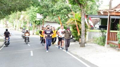 Kali ini rute olahraga menempuh jarak 5 Km. Dari Mapolres Gunungkidul yang juga melakukan olahraga pun bergabung dengan bupati untuk lari bersama.