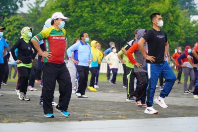 Bupati H Sunaryanta menegaskan bahwa untuk menghadapi pandemi covid salah satu upayanya adalah menjaga kesehatan dengan berolahraga.