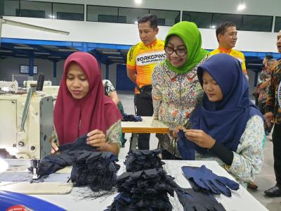 Badingah melihat persiapan perusahaan yang akan memproduksi sarung tangan kualitas ekspor menjelang pengoperasiannya pada Juni 2019 mendatang.