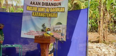 Gunungkidul – Bupati Gunungkid Hj. Badingah, S.Sos awali pembangunan masjid Jami Al-Barokah Karangtengah II dengan meletakan baru pertama, Sabtu(12/9).