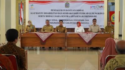 Adapun bantuan yang diberikan meliput alat bantu disabilitas sebanyak 60 unit dari APBD Gunungkidul, yang terdiri dari 30 kursi roda, 6 kruk, 21 alat bantu dengar, 1 walker, dan 2 tongkat tunanetra. Paket sembako bagi 30 penerima manfaat. Modal usaha bagi 13 penerima manfaat yang disalurkan melalui Sentra Antasena Magelang.