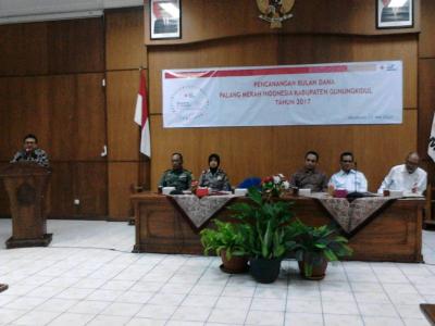 Gunungkidul – Dalam rangka mendukung tugas-tugas kemanusiaan, setiap tahun PMI di seluruh wilayah Indonesia mengadakan kegiatan Bulan Dana PMI, yaitu dalam bentuk menghimpun sumbangan dana. Seperti halnya PMI Kabupaten Gunungkidul, pada Jumat (12/05) bertempat di uang Rapat I Sekretariat Daerah, Bupati Gunungkidul Hj. Badingah, S.Sos. yang diwakili Sekretaris Daerah Ir. Drajad Ruswandono, MT mencanangkan Bulan Dana PMI Tahun 2017. Turut hadir dalam acara tersebut antara lain Dandim 0730, Kapolres Gunungkidul, Ketua PMI, dan tamu undangan dari seluruh Organisasi Perangkat Daerah.