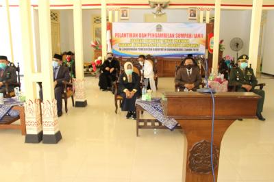 Gunungkidul – Pelantikan dan pengambilan sumpah janji jabatan tinggi Pratama, jabatan administrator dan jabatan pengawas di lingkungan pemerintah kabupaten Gunungkidul tahun 2020 dilaksanakan i bangsal Sewokoprojo, Rabu (10/6).