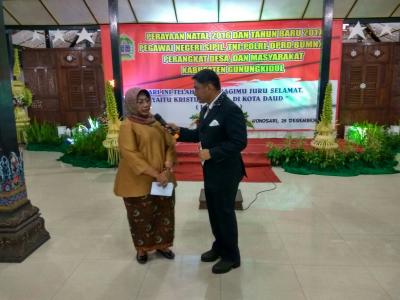 Gunungkidul– Pemerintah Kabupaten Gunungkidul menyelenggarakan perayaan Natal Tahun 2016  dan Tahun Baru 2017 bagi Pegawai Negeri Sipil, TNI-POLRI, DPRD, BUMN/BUMD, Perangkat Desa  dan Masyarakat Kabupaten Gunungkidul Kamis malam (29/12/2016). Acara digelar di Bangsal Sewokoprojo mulai pukul 19.00 WIB sampai selesai dengan tema : “Hari ini telah lahir bagimu juru selamat yaitu Kristus Tuhan di Kota Daud.”