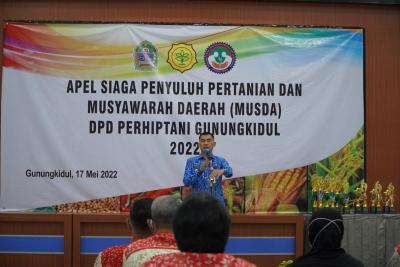 Gunungkidul – Bupati Gunungkidul, Sunaryanta memimpin Apel Siaga Penyuluh Pertanian Dan Musyawarah Daerah (Musda) DPD Perhiptani Gunungkidul yang diselenggarakan di Aula BMT Dana Insani, Selasa(17/05/2022).