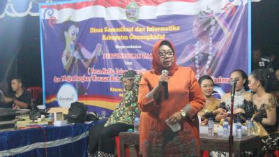 Gunungkidul – Upaya pemerintah daerah untuk pemulihan pasca bencana akibat cuaca ekstrim siklon Cempaka terus dilakukan, baik bantuan material maupun pemulihan secara psikologis. Salah satunya melalui Dinas Komunikasi dan Informatika, yang menggelar sosialisasi lewat Pertunjukan Rakyat dengan tajuk “Peran Media Dalam Pemulihan Pasca Bencana dan Mengembangkan Wawasan Kebangsaan untuk Mewujudkan Ketahanan Nasional”. Acara tersebut dilaksanakan pada Sabtu, (09/12) di Padukuhan Klayar, Desa Kedungpoh, Kecamatan Nglipar., sebagai salah satu kawasan terdampak banjir akibat meluapnya sungai Oya. Turut hadir pada acara tersebut, Bupati Hj. Badingah, S.Sos.,