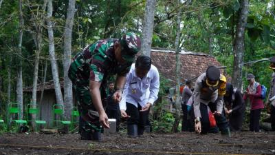 Hadir juga Plt Bupati Gunungkidul Heri Susanto yang turut serta melakukan prosesi penanaman bibit secara simbolis bersama jajaran Forkopimda lainnya,