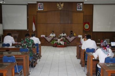 Rapat koordinasi evaluasi gugus tugas penananganan covid-19, untuk mengetahui sejauh mana proges pencapaian penanganan covid-19 dan dalam rangka mempersiapkan dlaksanakan new normal di tengah pandemi. Hadir dalam kesempatan tersebut kepala-Kepala OPD yang menyampaikan progres kerja dan rencana menghadapi new normal yang perlu di perisiapkan.