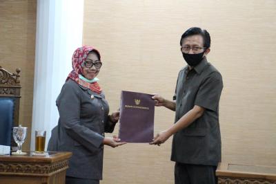 Acara dilanjutkan dengan penyerahan materi penjelasan bupati kepada ketua pimpinan rapat DPRD.