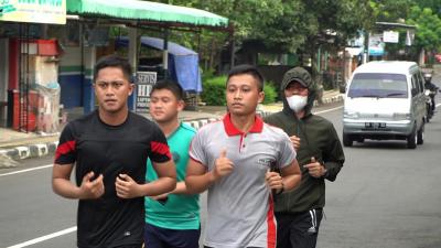 Bupati H.Sunaryanta melakukan olahraga dengan berlari dari kediamanya di kwarasan wetan menuju kantor pemda, Jumat (28/1). Di ikuti staffnya. Menempuh jarak kurang lebih 9 kilometer.