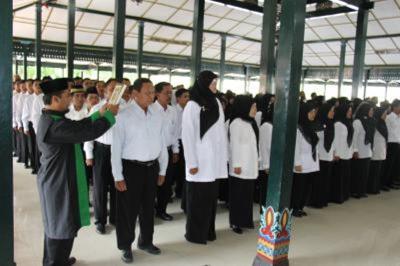 Wonosari, Jum’at (26/2) di Bangsal Sewoko Projo dilaksanakan pengambilan sumpah dan janji sebanyak 248 PNS di lingkungan pemerintah Kab. Gunungkidul Oleh Bupati. Hadir dalam acara tersebut Assiten Adminstrasi Umum, Kepala BKD dan beberapa kepala SKPD. Bupati Gunungkidul Hj.Badingah,S.Sos dalam sambutanya menyampaikan masyarakat menganggap saat ini aparatur sipil negara sudah memahami tugas dan tanggung jawabnya dalam melaksanakan pelayanan public sehingga kepuasan pelayanan kepada masyarakat wajib dilaksanakan.