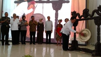 Pembukaan Bursa Inovasi Desa ditandai dengan pemukulan gong oleh Sekretaris Daerah, Ir. Drajad Ruswandono, M.T., didampingi Forkopimda dan tamu undangan.