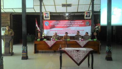 Gunungkidul – Lembaga Pengabdian Masyarakat (LPM) Institut Pemerintahan Dalam Negeri (IPDN) akan melaksanakan pengabdian kepada masyarakat pedesaan di wilayah Kabupaten Gunungkidul. Selasa (27/03), telah dilakukan pembukaan pelaksanaan pengabdian masyarakat oleh Sekretaris Daerah Ir. Drajat Ruswandono, M.T., di Bangsal Sewoko Projo, Wonosari. Selain sekretaris daerah juga hadir, Kepala Bappeda Ir. Sri Suhartanta, dan pejabat di lingkungan sekretariat daerah, Gubernur IPDN, Prof. Dr. Ermaya Suradinata, S.H., M.H., M.S., Dekan Fakultas Managemem Pemerintahan, Dr. Bambang Supriyadi, B.E., M.Si., Kepala LPM IPDN, Dr. H. Bayi Priyono, S.H., M.M., Kepala Pusat LPM IPDN, Drs. Hasbullah Hasan, M.Si., beserta jajaran.
