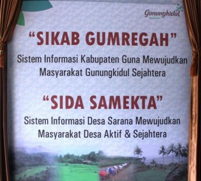 “ SIDA SAMEKTA yaitu Sistem Informasi Desa Sarana Mewujudkan Masyarakat Desa Aktif dan Sejahtera. Untuk sistem informasi kabupaten saya berikan nama “SIKAB GUMREGAH yaitu Sistem Informasi Kabupaten Guna Mewujudkan Masyarakat Gunungkidul Sejahtera. Dengan harapan dapat mewujudkan masyarakat Gunungkidul yang sejahtera yang menjadi tanggung jawab bersama mulai dari pemerintah desa hingga kabupaten.” jelas Bupati pada saat itu.