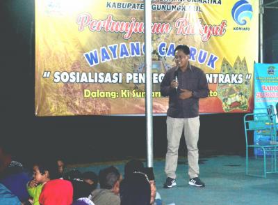 Gunungkidul – Dinas Komunikasi dan Informatika Kabupaten Gunungkidul, gencar melaksanakan sosialisasi masalah Antraks. Sosialisai Pencegahan Antraks dilaksanakan di Balai Dusun Pengkol, Desa Pengkol, Kecamatan Nglipar melalui pertunjukan rakyat wayang cakruk, Sabtu, 01/02/2020.