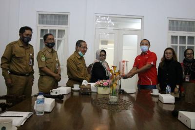 Gunungkidul – Bupati Hj. Badingah, S.Sos menerima Audiensi Telkomsel dalam rangka kerjasama program pendidikan bagi pelajar  Gunungkidul, di Rumah Dinas Bupati, Selasa (1/9).