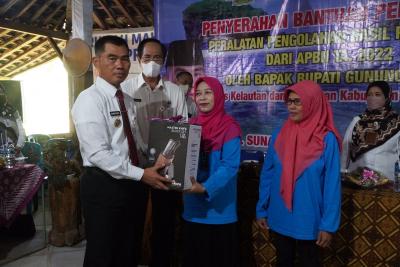 Bantuan sebanyak 2 paket yang bersumber dari APBN Tahun 2022, diserahkan langsung oleh Bupati Gunungkidul, Sunaryanta kepada Kelompok Pengolahan dan Pemasaran (Poklahsar) Alam Nglipar dan Ngudi Lestari Playen, Rabu (7/9/2022) di salah satu rumah makan di Kapanewon Nglipar.