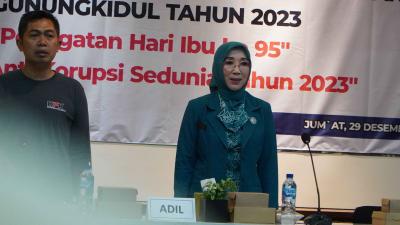 [PIC1]Gunungkidul – Penyuluhan Anti Korupsi untuk Organisasi Perempuan se Kabupaten Gunungkidul Tahun 2023, dalam rangka “Peringatan Hari Ibu ke 95″ dan ” Peringatan Hari Anti Korupsi Sedunia Tahun 2023″ yang digelar di Aula BDG, Jumat (29/12/2023).
