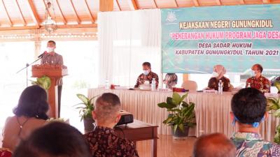 Kajari Gunungkidul Ismaya, SH mengatakan Penerangan hukum Program Jaga Desa Desa Sadar Hukum Kabupaten Gunungkidul Tahun 2021 yang dilakukan oleh Kejaksaan Negeri Gunungkidul merupakan salah satu Kebijakan Utama Jaksa Agung R.I bagi seluruh Jaksa di penjuru Indonesia.
