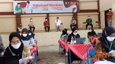 Vaksinasi merdeka Polda DIY dan lembaga kesehatan Nahdlatul ulama LKNU DIY menyasar untuk masyarakat u usia 16 tahun ke atas dengan target 2000 peserta.