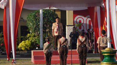 Dalam amanatnya, Joko Parwoto membacakan sambutan Ketua Kwartir Nasional Gerakan Pramuka yang menegaskan bahwa tema tersebut bukan sekadar slogan, melainkan tekad bersama untuk memperkuat jati diri Pramuka sebagai insan Pancasila yang siap menjaga keutuhan Negara Kesatuan Republik Indonesia (NKRI).