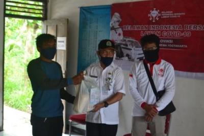 Wakil Bupati Dr. Imawan Wahyudi, MH bersama Relawan Indonesia Bersatu lawan covid-19 DIY, membagikan paket sembako
