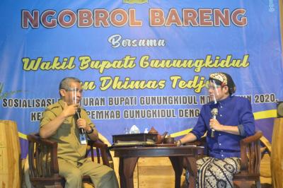 Gunungkidul – Wakil Bupati Gunungkidul Dr. Immawan Wahyudi, MH Menjadi nara sumber dalam dialog khusus bertajuk Ngobrol Bareng Wakil Bupati Gunungkidul dan Dimas Tedjo di Studio SRGK Playen dalam sosialisai Perbup No-68 tahun 2020 tentang adaptasi tatanan baru Protokol kesehatan, Selasa (22/9). yangakan disiarkan RBTV.