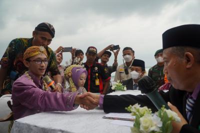 Selesai janji nikah dinyatakan sah, ia kemudian bergeser ke pasangan lainnya, begitu seterusnya sampai selesai. Wakil Bupati juga turut senang bisa mengikuti moment haru serta bahagia pasangan tersebut.