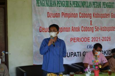 Gunungkidul – Pengukuhan Pengurus Perkumpulan Petani Pegiat Porang Nusantara DPC Kabupaten Gunungkidul dan dewan PAC se- Kabupaten Gunungkidul periode 2021-2026 secara resmi dikukuhkan oleh wakil Bupati di Pendopo Taman Teknologi Pertanian TTP, Nglanggeran Patuk Gunungkidul, Minggu (21/3).[PIC2]