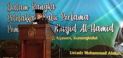 Gunungkidul – Pengajian akbar sekaligus acara peletakan batu pertama dalam rangka pembangunan Masjid Al Hamid, di Padukuhan Bendo, Desa Beji, Kecamatan Ngawen dilaksanakan, Minggu, (24/02), dihadiri Wakil Bupati, Dr. H. Immawan Wahyudi, M.H.
