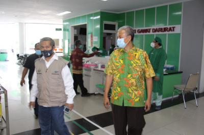 Gunungkidul – Bertambahnya kasus Covid-19 dalam seminggu terakhir, Ketua Pelaksana Harian Gugus Tugas Gunungkidul Dr. Immawan Wahyudi, MH monitoring pelaksanaan penanganan Gugus tugas yang warganya terdeteksi raktif rapid maupun swab di kapanewon Nglipar maupun RSUD Wonosari sebagai tempat perawatan pasien Positif Covid-19. Wakil Bupati dalam kunjunganya di RSUD Wonosari, Sabtu (11/07) mengatakan penanganan harus lebih ditingkatkan dan koordinasi dengan Pihak RS rujukan Penanganan Covid-19 melihat kapasitas RS yang terbatas. Direktur RASUD dr. Heru Sulistyawati, S.PA[PIC2]