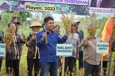 tidak sendiri Heri Susanto didampingi oleh Catur Setiawan, Koordinator Pengawasan Mutu Benih, Ditjen Tanaman Pangan Kementerian Pertanian, BPP Dinas Pertanian dan Pangan Kabupaten Gunungkidul serta kelompok tani.