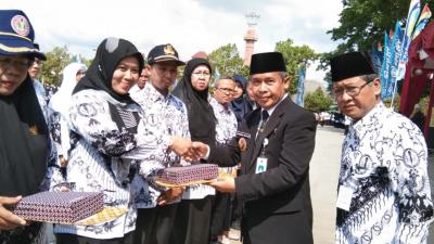 Isi pidato Mendikbud, Nadiem Makarim, sepanjang 2 halaman yang dibacakan Wakil Bupati, Immawan Wahyudi, banyak berbicara soal tugas dan fungsi guru yang kadang terbentur oleh sistem dan berbagai tanggung jawab administrasi.