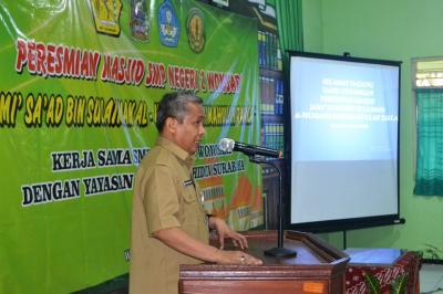 Gunungkidul-Wakil bupati Gunungkidul Dr. Immawan Wahyudi, MH berkesempatan hadir dan meresmikan masjid Jami Saad SMP Negeri 2 Wonosari, Senin (09/03).