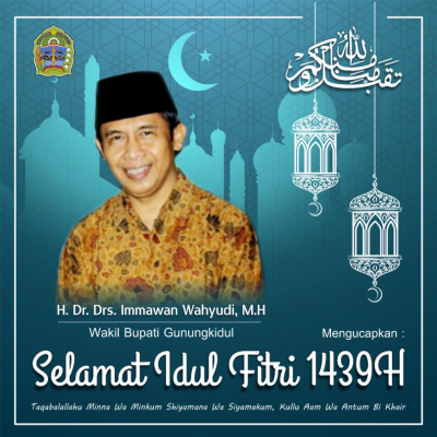 Saya H. Immawan Wahyudi, selaku pribadi maupun selaku Wakil Bupati Gunungkidul dengan ini mengucapkan Selamat Hari Raya Idul Fitri 1439 Hijriyah, Mohon Maaf Lahir dan Batin kepada seluruh warga masyarakat Gunungkidul, teriring doa semoga semua amal ibadah kita diterima  Allah Subhanahu Wa taala.